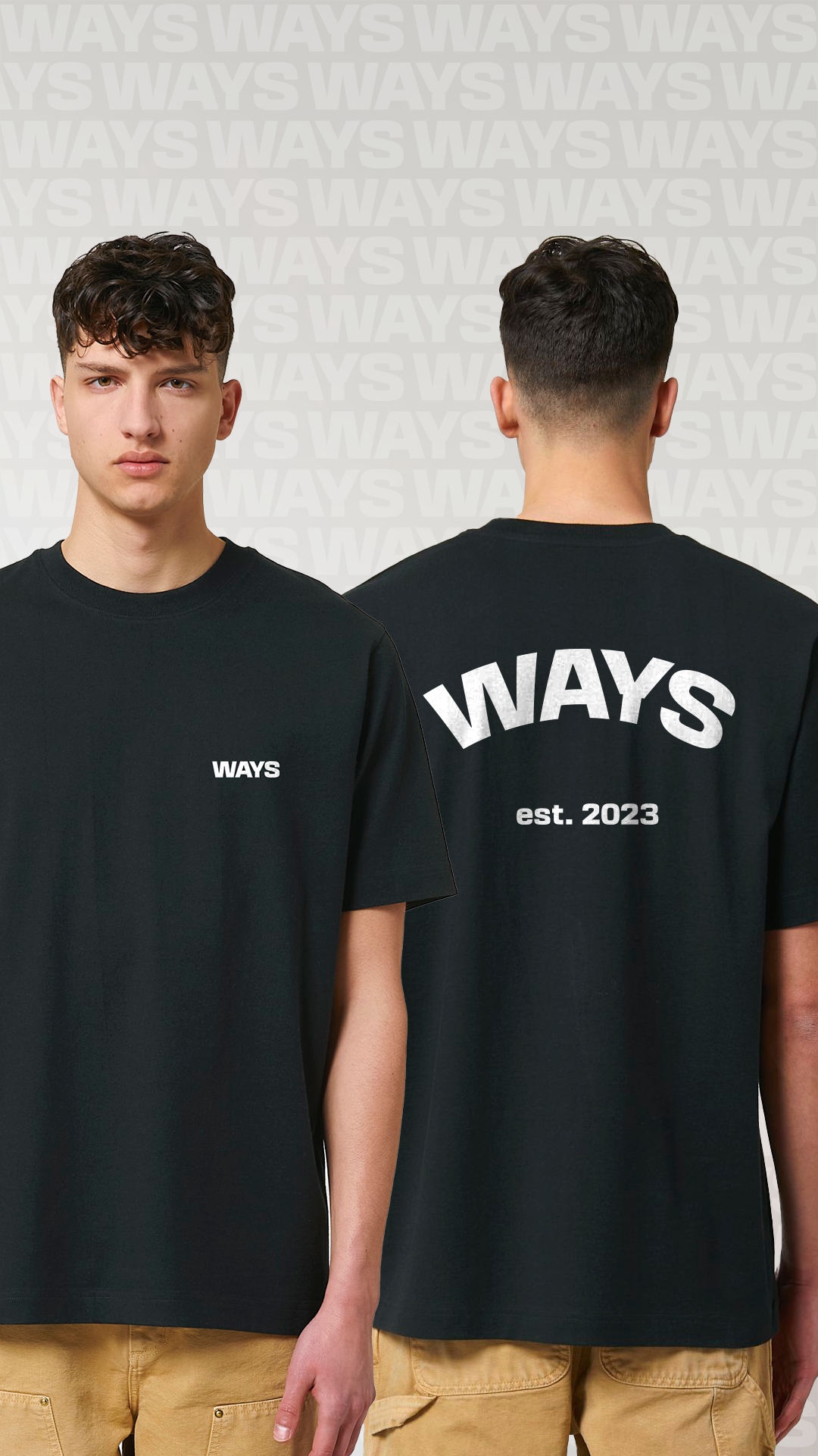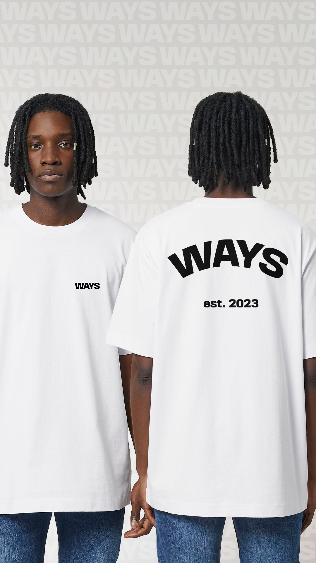 WAYS is mijn eigen kledingmerk dat draait om verbinding, met zelfontworpen designs en een herkenbaar symbool als kern van het concept. Voor de SS23-drop bracht ik twee T-shirts uit, die snel uitverkocht waren en het succes van het merk bevestigden. Dit motiveerde mij om nieuwe kleding- en accessoireconcepten te ontwikkelen waarin duurzaamheid, esthetiek en betekenis centraal blijven staan. Met initiatieven zoals een exclusieve Black Friday-restock bouw ik verder aan WAYS als merk én community waarin stijl en identiteit samenkomen.